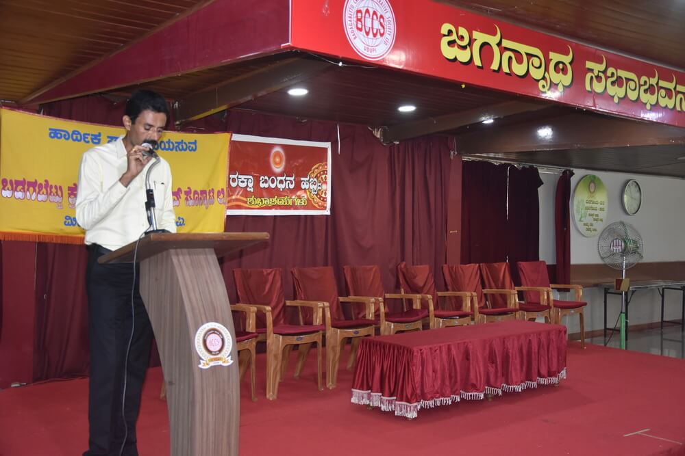 ನಮ್ಮ ಸಂಘ ಹಾಗೂ ಪ್ರಜಾಪಿತ ಬ್ರಹ್ಮಾಕುಮಾರಿ ಈಶ್ವರೀಯ ವಿಶ್ವವಿದ್ಯಾಲಯ ಉಡುಪಿ ಅಜ್ಜರಕಾಡು ಕೇಂದ್ರದ ಸಹಭಾಗಿತ್ವದಲ್ಲಿ ಸಂಘದ ಜಗನ್ನಾಥ ಸಭಾಭವನದಲ್ಲಿ ರಕ್ಷಾಬಂಧನವನ್ನು ವಿಶಿಷ್ಟ ರೀತಿಯಲ್ಲಿ ಆಚರಿಸಲಾಯಿತು. ಬ್ರಹ್ಮಾಕುಮಾರಿ ಸುಮಾರವರು ರಕ್ಷಾಬಂಧನದ ಮಹತ್ವ ಸಾರುವ ಸಂದೇಶ ನೀಡಿದರು. ನೆರೆದಿದ್ದವರಿಗೆ ರಾಖಿ ಕಟ್ಟುವುದರೊಂದಿಗೆ ಸಿಹಿತಿಂಡಿ ವಿತರಿಸಲಾಯಿತು. ಸಂಘದ ಅಧ್ಯಕ್ಷರಾದ ಶ್ರೀ ಜಯಕರ ಶೆಟ್ಟಿ ಇಂದ್ರಾಳಿ, ಪ್ರಜಾಪಿತ ಬ್ರಹ್ಮಾಕುಮಾರಿ ಈಶ್ವರೀಯ ವಿಶ್ವವಿದ್ಯಾಲಯ ಉಡುಪಿ ಅಜ್ಜರಕಾಡು ಕೇಂದ್ರದ ವೈ.ಮೋಹನ್, ರತ್ನಾಕರ ಕಿಣಿ, ರಘುರಾಮ್, ಸಂಘದ ಶಾಖಾ ವ್ಯವಸ್ಥಾಪಕರು ಹಾಗೂ ಸಿಬ್ಬಂದಿಗಳು ಕಾರ್ಯಕ್ರಮದಲ್ಲಿ ಉಪಸ್ಥಿತರಿದ್ದರು. ಸಂಘದ ಪ್ರಧಾನ ವ್ಯವಸ್ಥಾಪಕರಾದ ಶ್ರೀ ರಾಜೇಶ್ ಶೇರಿಗಾರ್ ಸ್ವಾಗತಿಸಿ, ಸಹಾಯಕ ಪ್ರಧಾನ ವ್ಯವಸ್ಥಾಪಕರಾದ ಶ್ರೀ ಪ್ರವೀಣ್ ಕುಮಾರ್ ಕಾರ್ಯಕ್ರಮ ನಿರೂಪಿಸಿದರು.
